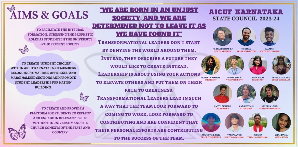 In the year 2011-2012, Fr Brian Pereira SJ succeeded Fr Francis Almeida SJ as the State Advisor for Karnataka AICUF.